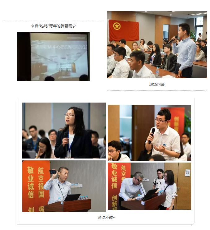 講座采用了多種信息化手段,實(shí)時(shí)的彈幕提問與持續(xù)不斷的現(xiàn)場問答將整個(gè)講座推向了高潮,“機(jī)庫吃雞”“BIM與區(qū)塊鏈”等互聯(lián)網(wǎng)熱點(diǎn)也成為青年員工關(guān)注的焦點(diǎn),即便散場以后,大家的熱情依舊不減,圍繞在云朋身邊的“問題”青年不斷。